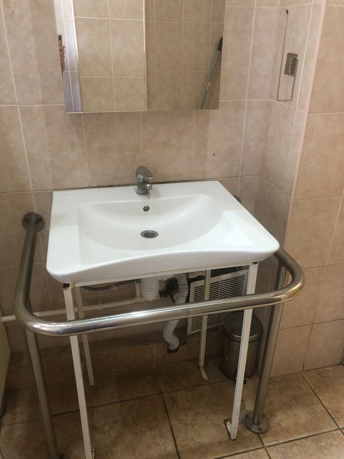 - в санитарной комнате имеется специальный унитаз и раковина с поручнем;