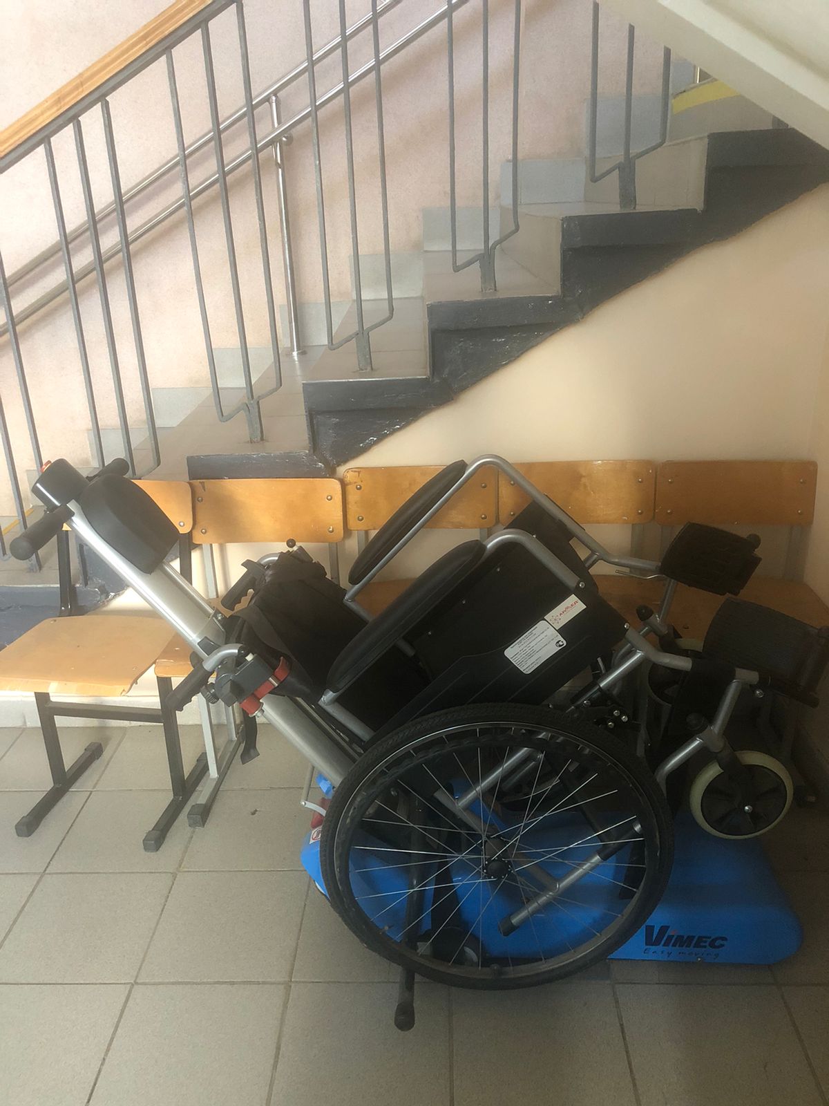 наличие гусеничного лестничного подъемника «ROBY TO09» для маломобильных групп, тактильные таблички, выполненные шрифтом Брайля, перед лестницей и вдоль движения – контрастная маркировка ступеней лестничного марша, наличие маркировки на перилах – для слабовидящих
